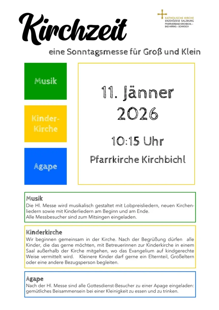 Sonntag, 11. Jänner 2026, 10:15 Kirchzeit, herzliche Einladung an Groß und Klein!